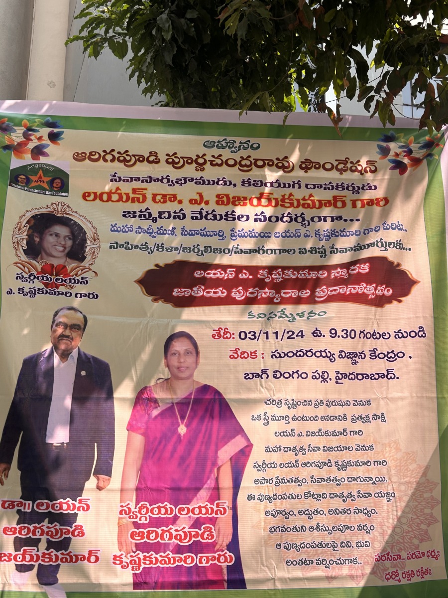 Dr Arigapudi Vijay Kumar’s work has received several nominations for the prestigious “Padma Shri” under the “Social Work Category”. His work since his formative years and as an active Lions Club Leader have focused solely on social service and Philanthropy. From academic Professors to Social activists, to political leaders, several Padmashri awardees have recommended Dr AVK’s candidature for the prestigious award.no images were found